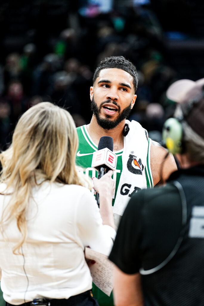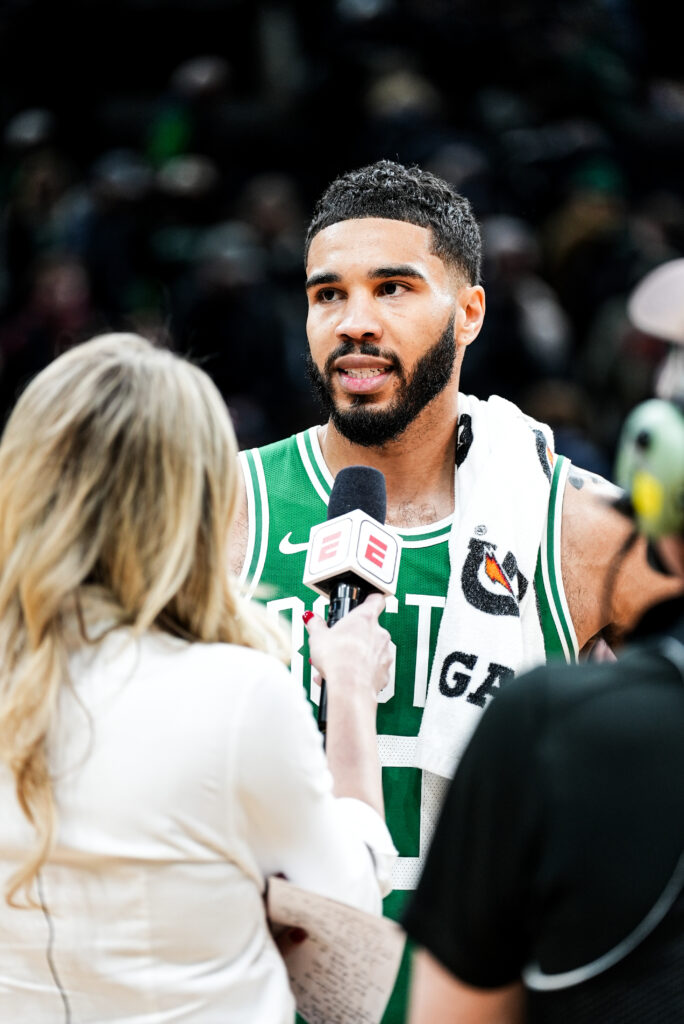BOSTON – The Celtics dominated the Knicks on Sunday afternoon in a 118-105 victory. Boston improved to 3-0 against New York this season with an average margin of 21. Jayson Tatum led the Celtics with 25 points, 10 rebounds and 9 assists, 1 assist shy of a consecutive triple double. After the game, Tatum was asked about teams like the Knicks and Cavs building their rosters to beat the Celtics.