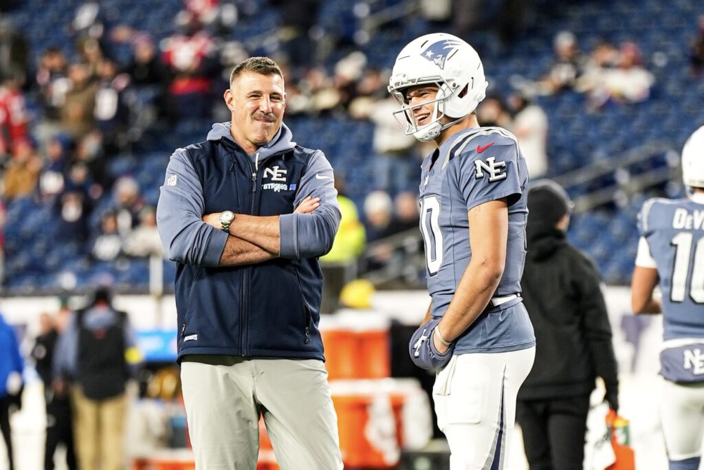 Drake Maye and Mike Vrabel at Patriots Jets Week 11. Photo by CLNS Media.