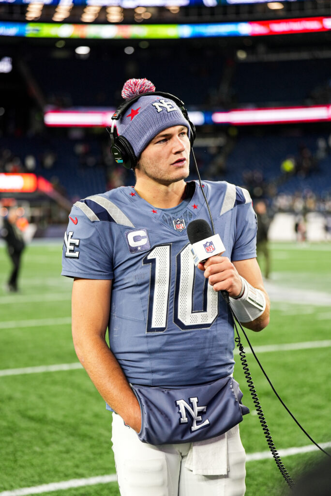 Drake Maye at Patriots Jets Week 11. Photo by CLNS Media.